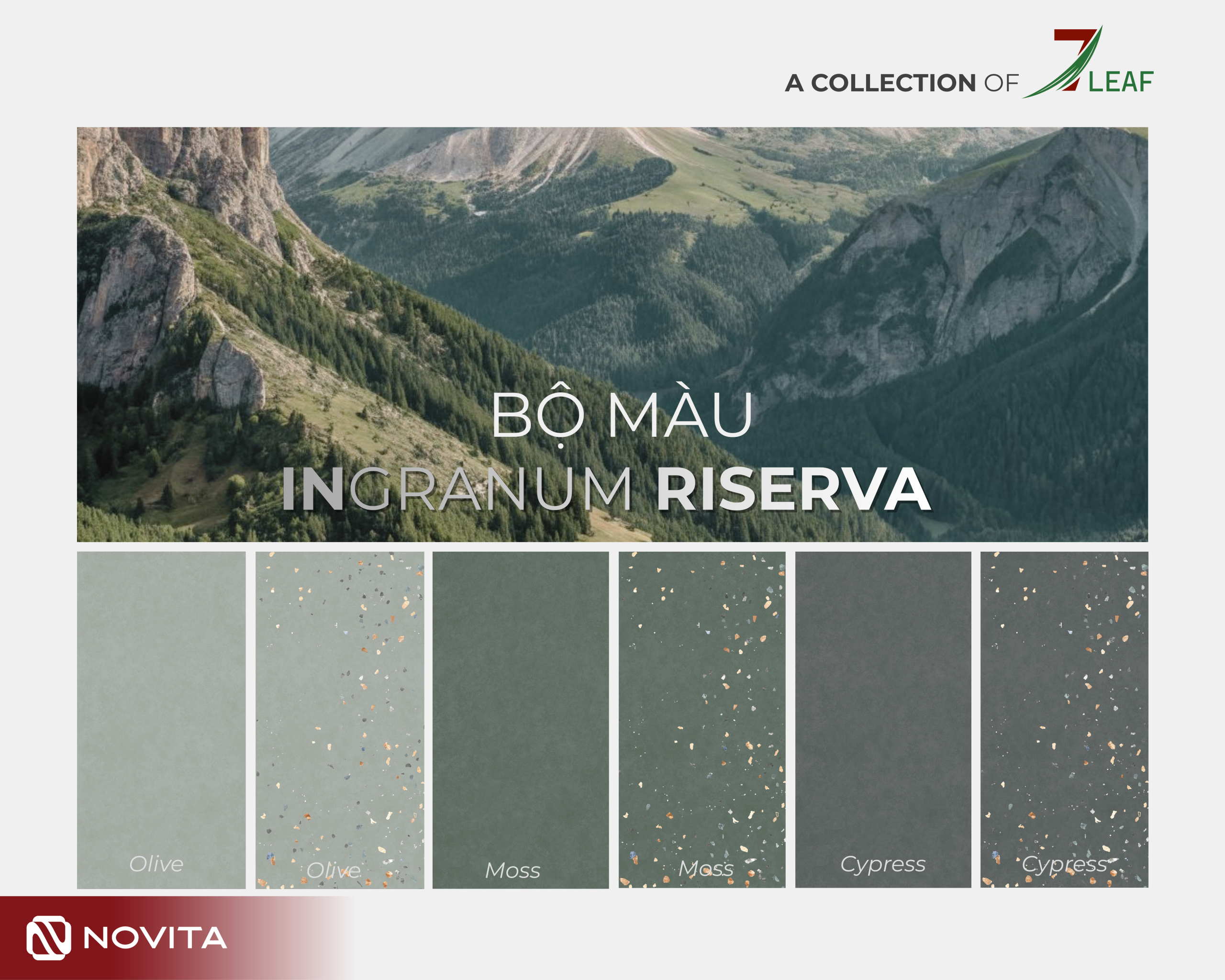 - Bộ màu Ingranum Riserva – “Khu bảo tồn” sắc tố tự nhiên: Được coi là niềm tự hào và cũng là dải màu dẫn đầu xu hướng kiến trúc tương lai, Riserva là thành quả của quá trình chinh phục những sắc độ “khó tính” nhất trong ngành gốm sứ. Bằng công nghệ kiểm soát nhiệt độc quyền, SEVENLEAF đã lưu giữ trọn vẹn linh hồn của các loài thực vật cổ xưa vào trong xương gạch: từ sắc Ô-liu (Olive) kiêu hãnh, sắc Rêu (Moss) thâm trầm đến màu Bách tùng (Cypress) vĩnh cửu. Đây là điểm nhấn đắt giá cho xu hướng thiết kế ưa sinh học, giúp con người thực sự hòa mình vào thiên nhiên, chữa lành và tái tạo năng lượng ngay khi bước chân qua cánh cửa.