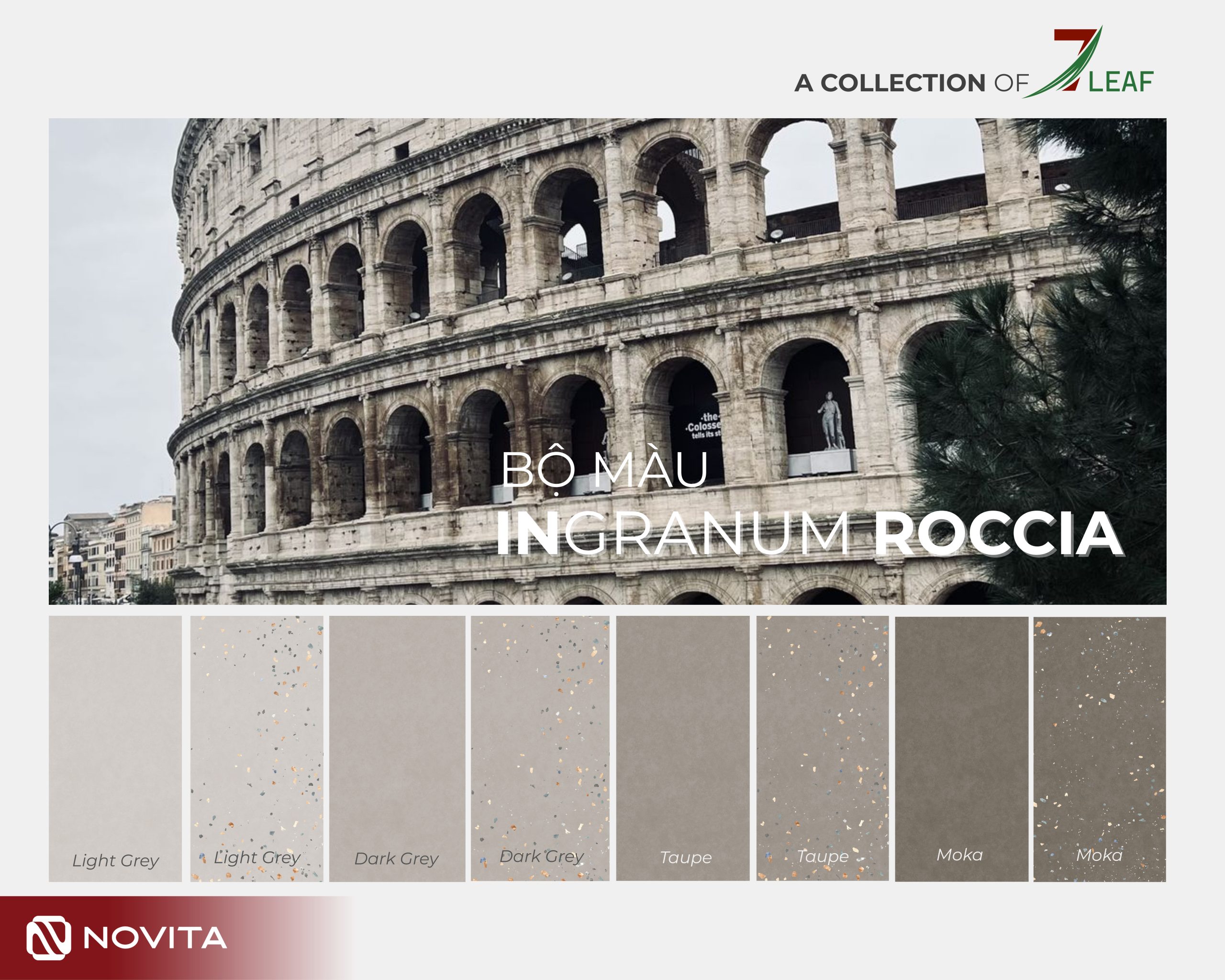 - Bộ màu Ingranum Roccia – Điểm tựa của thời gian: Nếu mọi công trình vĩ đại đều cần một điểm tựa, thì Roccia chính là bản hòa ca của trầm tích và thời gian. Đại diện cho tinh thần hiện đại, phóng khoáng qua những tông xám và nâu thâm trầm, Roccia không phô trương bằng sự bóng bẩy mà chinh phục bởi nét gai góc, vững chãi. Đây là giải pháp hoàn hảo để giữ cho tâm trí luôn tĩnh tại giữa nhịp sống đô thị hối hả.