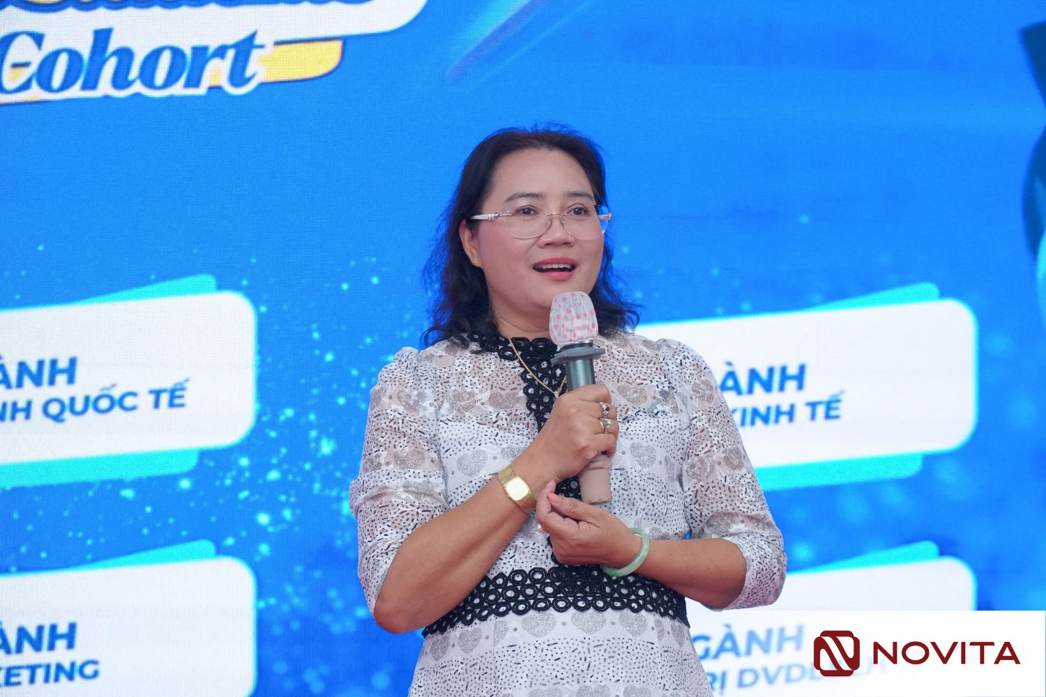 Buổi giao lưu đã trở nên ý nghĩa và sâu sắc hơn với phần chia sẻ hướng nghiệp từ Chị Nguyễn Thị Hoàng Quyên – Phó Tổng Giám đốc Công ty Cổ phần Thương mại & Sản xuất gốm sứ Novita.
