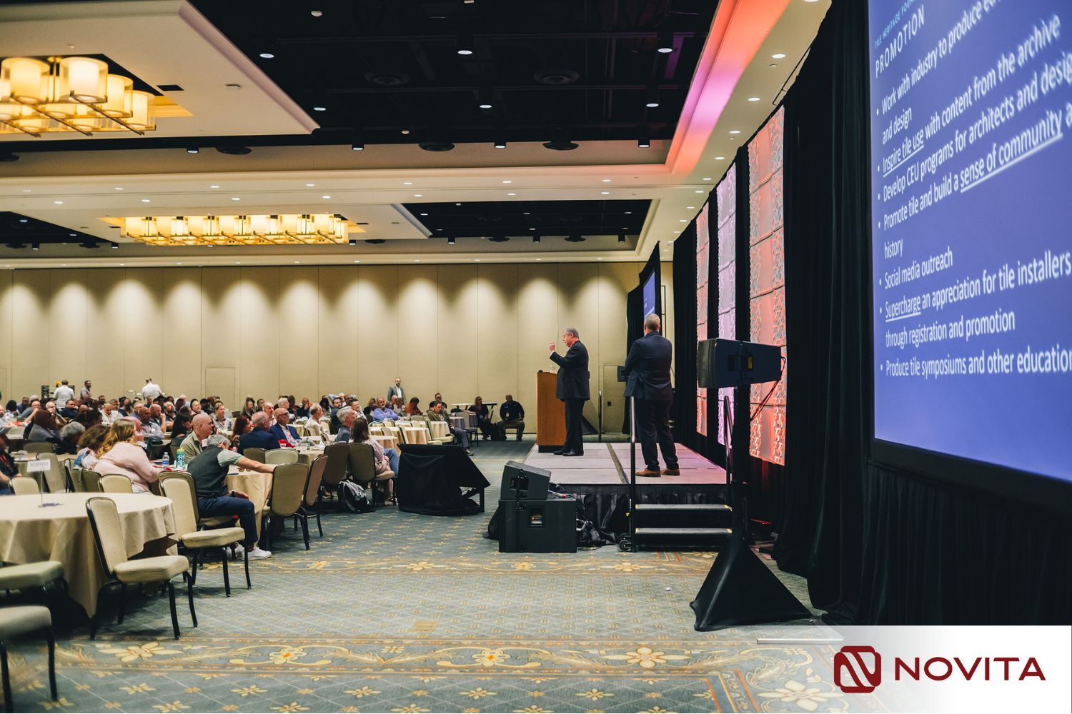 Sự hiện diện và vai trò của NOVITA tại TSP 2025 là một chiến lược định vị cấp cao ngay trong giai đoạn thương hiệu đang xây dựng nền móng. Tile Solutions Plus được biết đến là “Bàn tròn quyền lực” của những người định hình tương lai ngành. Hội nghị quy tụ hàng trăm nhà lãnh đạo, nhà sản xuất và chuyên gia thiết kế, được bảo chứng bởi bốn Hiệp hội gốm sứ lớn nhất Hoa Kỳ: TCNA, NTCA, CTDA và TCAA.